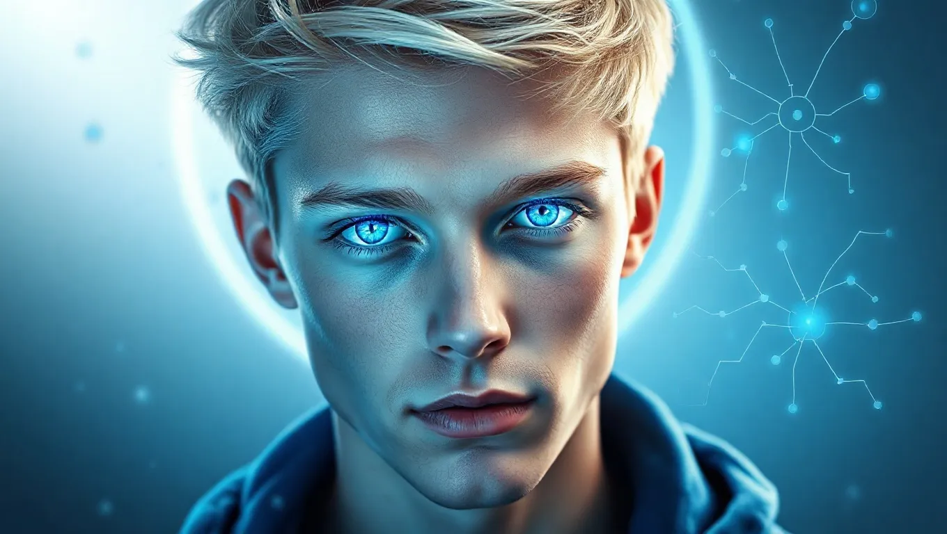 Furthermore, the blonde man with electric blue eyes can be interpreted as a messenger or a guardian figure embodying divine purity. This image resonates with biblical characters who exemplify unwavering faith and moral uprightness, inspiring you to reflect on your spiritual path and strive for greater purity and righteousness in your daily life.