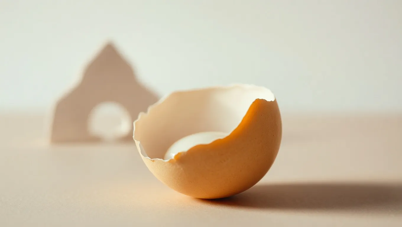 The divided egg could signify a sense of inner conflict. Parts of themselves may be pulling in different directions. Choices about future paths feel overwhelming. One side of the egg might represent past comforts or familiar identities, while the other hints at emerging ambitions or new values.