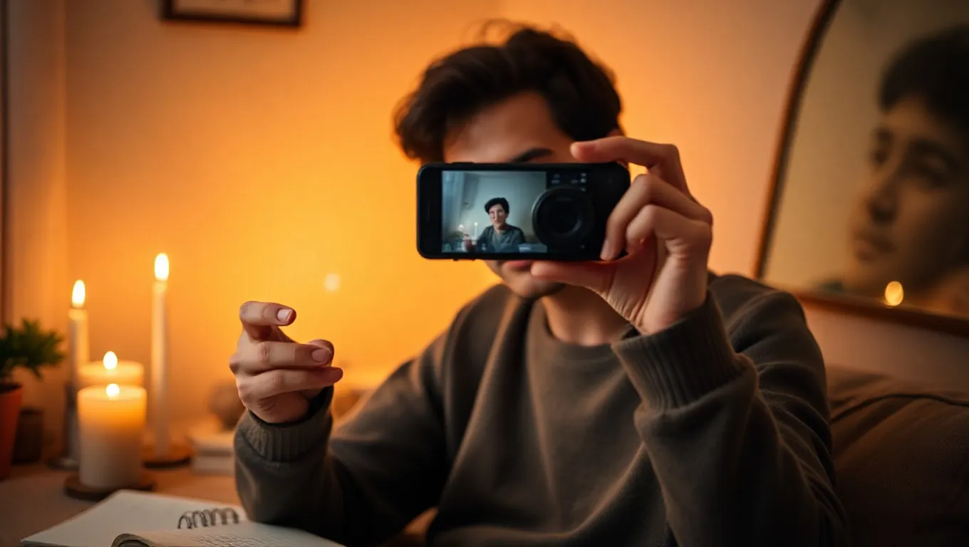 This dream could also mean you are preparing to share a significant part of yourself, whether it’s your ideas, emotions, or experiences. It suggests a need for self-expression and validation. An alternative meaning is that you may be reflecting on how you present yourself to the world, considering how others perceive your ‘recorded’ image or message.