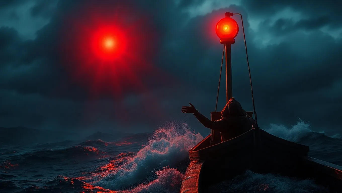 This dream suggests that you are currently facing uncertainties or turbulent situations in your waking life. The red beacon acts as a protective sign, reminding you to pay attention to your instincts and heed important signals from your environment. It can also indicate that although you might feel lost or vulnerable, there is a source of support or inner strength guiding you safely forward.