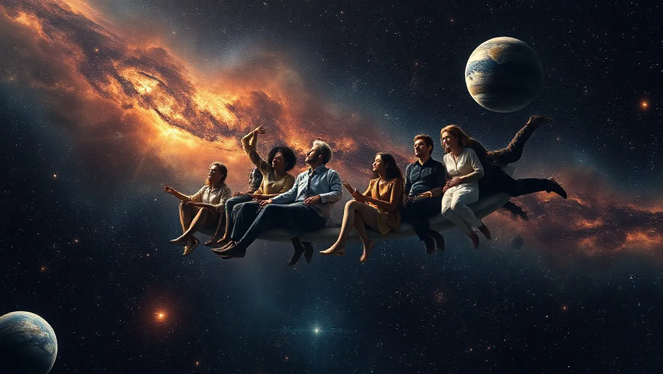 Such a dream highlights the power of collective effort and cooperation. It may indicate that you are recognizing the importance of teamwork in overcoming obstacles or reaching your goals. The presence of others in the expansive backdrop of space emphasizes that curiosity thrives best when shared and that breakthroughs are often a result of joint endeavors.