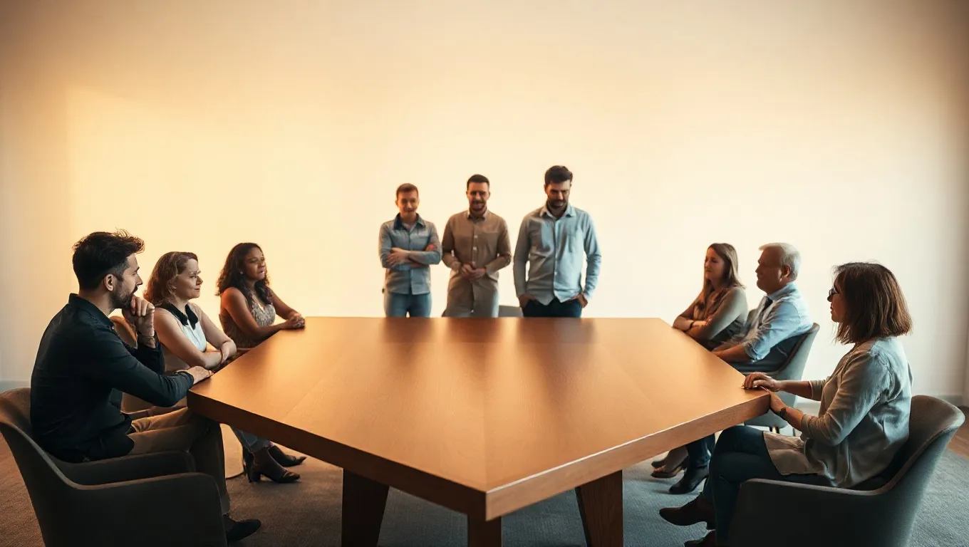 Imagine sitting at one end of that table. Your peers are arranged along the slanting sides, creating a clear direction or focus point. This can reflect how students perceive group dynamics—sometimes feeling split between different opinions or approaches. The V-shape might hint at choices they need to make, paths diverging or coming together.